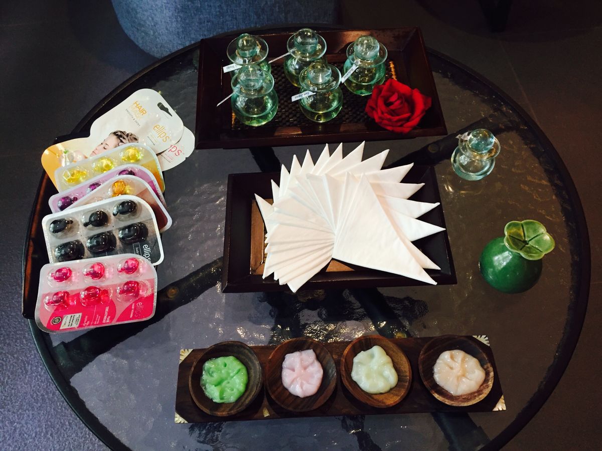今回はちょうどウォーターマークホテルに宿泊していたので、こちらともう1箇所で6時間エステを受けました。リアンスパの入口から入ってすぐ右側のところにリアンスパはあります。予約の時間の少し前に到着すると、すぐにイスに通して頂けました。飲み物を出して頂いて、カウンセリングシートの記入、メニューのチョイス、選んだものによって、使用するオイルを決定します。