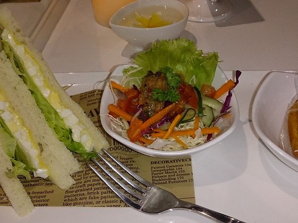 最後にカフェで食べた軽食も私たちにはちょうどいい量でした。タマゴサンド、サラダ、フィナンシェ、そして飲物がついてました。