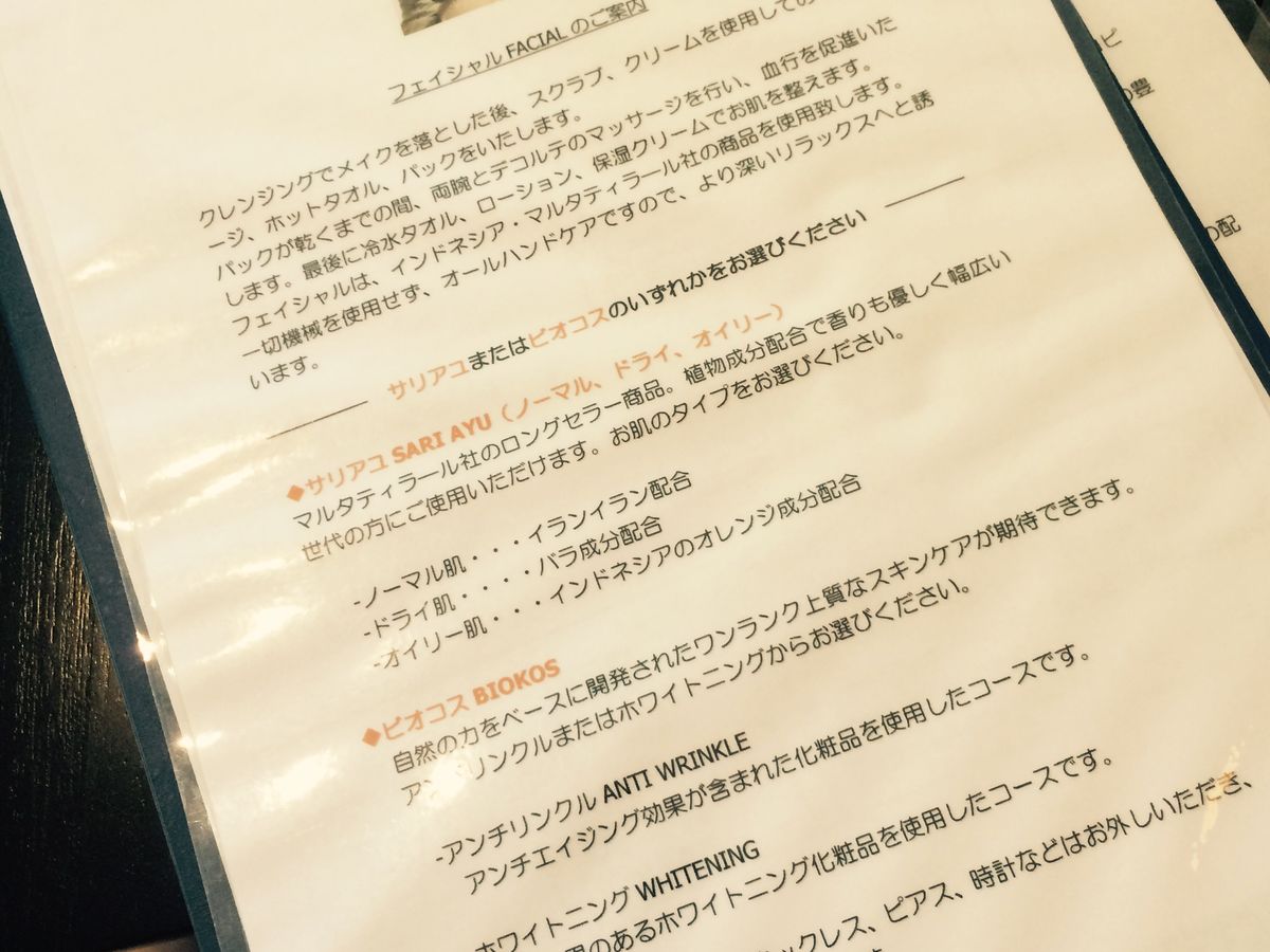 ツアーの関係で2時間が限度でしたが、フェイシャルが大満足だったので、ボディも期待してしまい、最後は残念な感じでした。