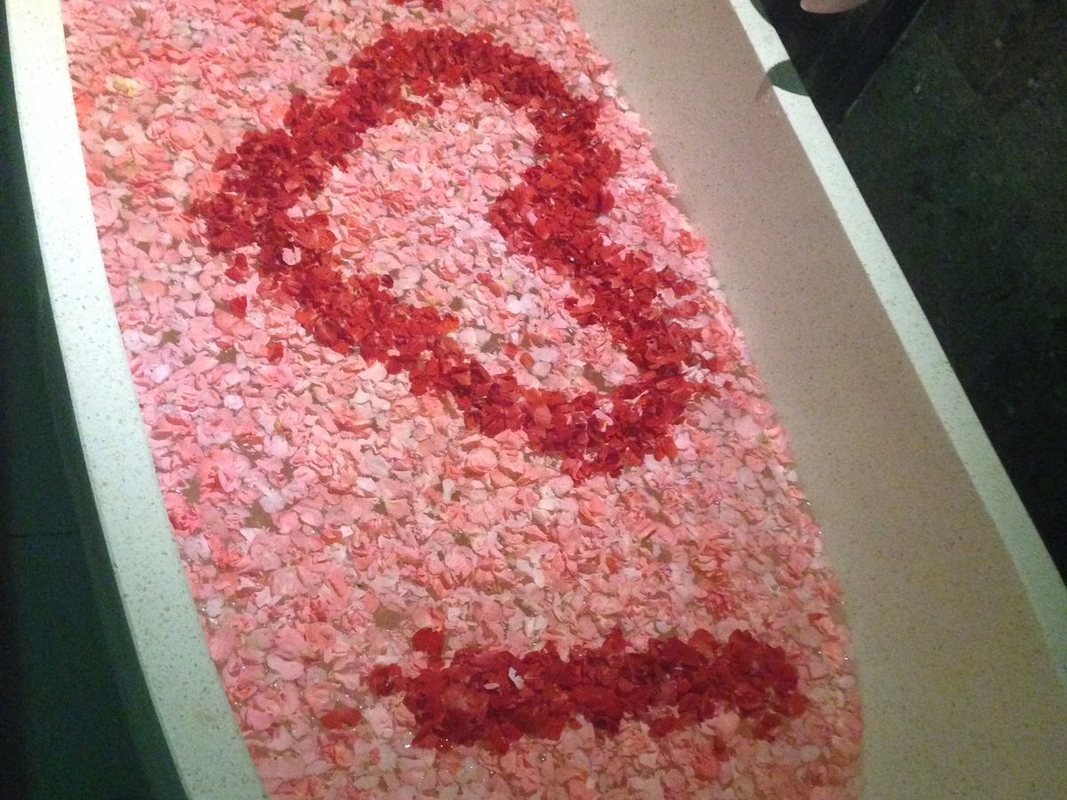 このメニューでこの価格は日本では考えられません。フラワーバスもお花がいっぱいでステキでした!(前回行ったお高いホテルのスパよりもずっと豪華でした。)
