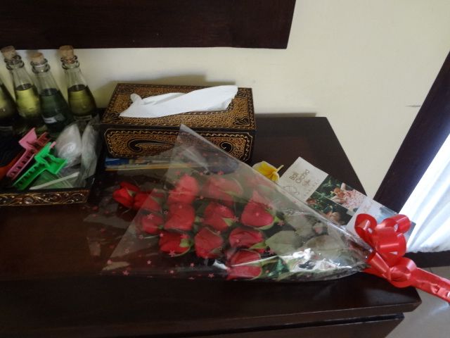 まず到着をすると、赤いバラの花束でスタッフの方々がお祝いしてくれました。