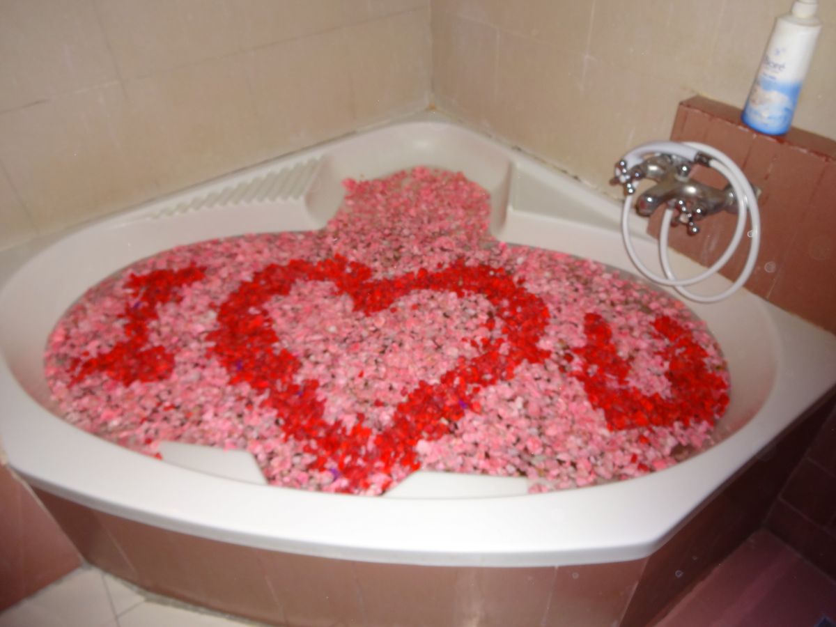 フラワーバスには私たちの名前を花弁で書いてくれ、素敵な泡風呂でした(*^^*)