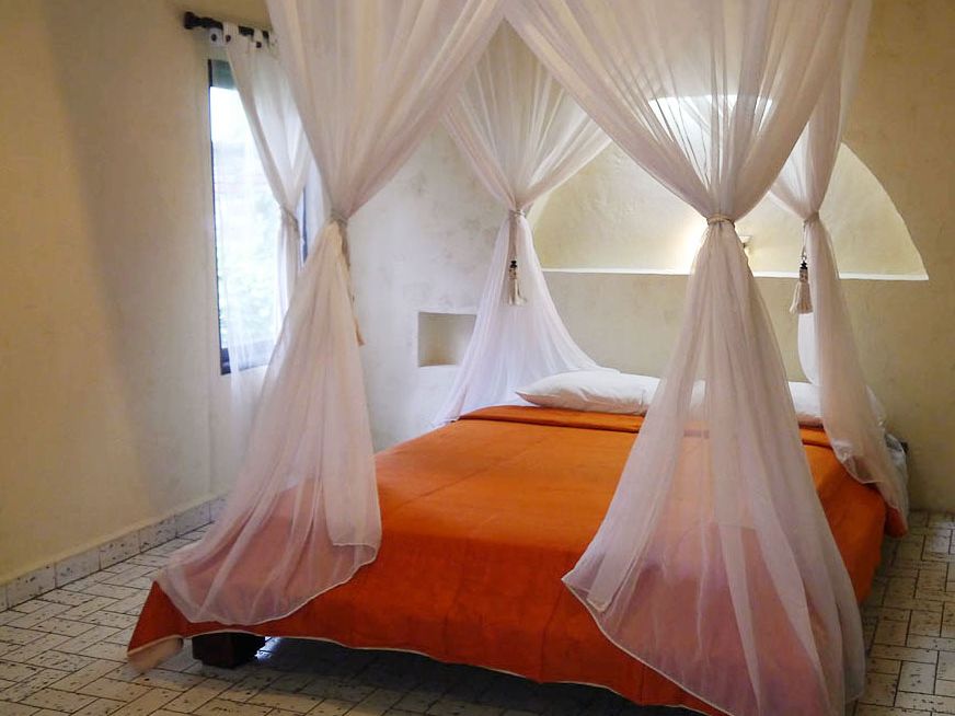 もちろんシャワーを浴びることも可能。多少古さは否めませんが、天蓋付きベッドのおへやはとてもかわいかった。