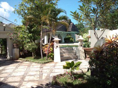 塗装されていない山の道をずっと奥へ進んで行きました。こんなところにあるの?!と思いましたがきれいなロビーが。日本語は通じません。 ウェルカムドリンクをいただきお部屋に案内がされました。窓が開けられ庭が見え開放的!風が気持ちよかったです。ただ1つシャワールームが薄暗く少し抵抗がありました。キャンドルがあればいいなーと思いました。全体的には満足です!