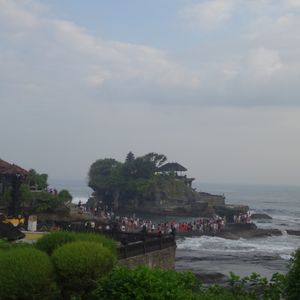 最後の本ツアーのハイライト、タナロット寺院の夕陽を見に向かいました。すごいところに寺院があり、潮風が涼しい風を運んできます。スマホで日の入りの時間を確かめ、まだ時間があったので、隣の島の上の寺院を観に行きました。で、肝心の夕陽ですが、あいにくの雲に邪魔されてみることは出来ませんでした。後でガイドさんに訊いたらきれいな夕日はなかなか見られないとのことで、次回の楽しみにとっておくことにしました。