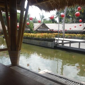 池の上に並ぶ水上コテージのような個室で、インドネシア料理の数々を堪能しました。