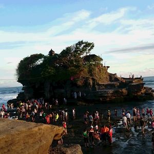 タナロット寺院は海の上に立っていてとても神秘的でした。引き潮?だったのか近くまで行くことができました。下が海水で濡れて岩肌なので足元が滑りやすいので少し注意が必要です。滑って転んでいる人もいました。