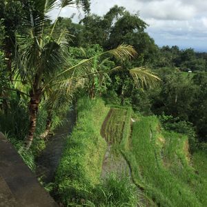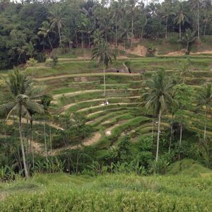 半日貸切観光ツアーということで、12時~の半日ツアーに参加しました。まず初めにジャティルイのライステラスが水路の工事中で稲が育っていないということで、当日ウブドのライステラスへ変更して頂きました。天気も良く、ちょうど現地の方がかさを被りながらの稲刈りの様子も見ることが出来ました。バリ島の田んぼも減ってきている中、緑の山に囲まれた綺麗な棚田は絶景でした。