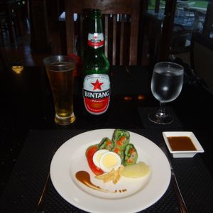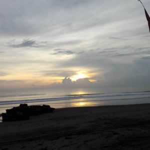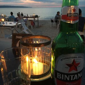 夕日のためにタナロット寺院に向かったのですが、時期のせいか晴れているのに雲が厚い。。。ガイドさんに海辺に行ってみますか?と提案していただきスケジュールには無かったジンバランのイカンバカールの海辺で雲に隠れた夕日を見ながらジンタンビールをいただきました。夕日はとても残念でしたが二日間とも親切にしていただき本当に良かったです。