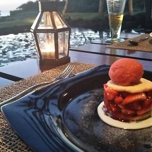 バリの主要寺院2つを一度に巡ることができ、さらにはタナロット寺院を一望できるテラス席で高級ディナーを味わうことができ、旅の思い出になる素晴らしいツアー内容でした。各寺院の感想は各種サイトの口コミとも重複するので詳細は割愛しますが、写真の通りバリの歴史・文化を感じるにはとてもよいスポットだと思います。ディナーは前菜・メイン・デザートの3品から成るコースで、たくさん食べる人にはやや物足りないかもしれませんが、味は非常によかったです(飲み物代は別料金)。