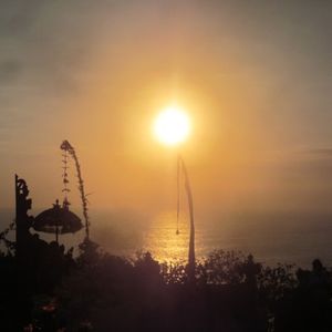 買い物をしながらドンドン進むと、素敵な景色が!海に浮かぶ寺院!目の前の光景に感動しました。しばらくカフェでコーヒーを飲みながら待っていると、いよいよサンセット。神秘的な光景でした。