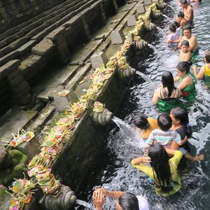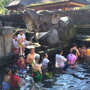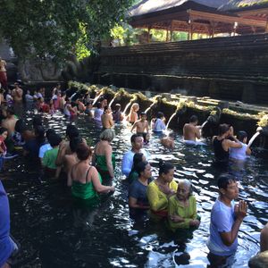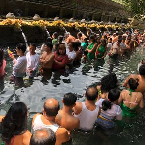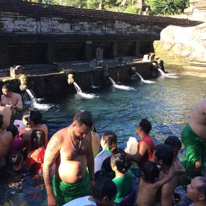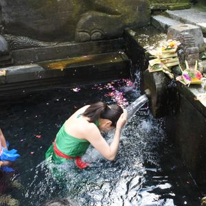 この沐浴は,地球の歩き方にも記載されていますが,ガイドさん(又は現地の人)が付いていてくれないと,衣装や作法のほか,着替え場所(水着か着替えが必須)などの一連の準備が分からないので,体験することが事実上できないと思います。我々は,ちょうど満月の日に当たり,1か月で最も混んでいる日に往訪したのですが,優しくユーモアのあるバリ人たちと共に,支障なく沐浴できました。