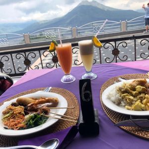 絶景を見ながらの食事(ビュッフェ。飲み物なしで140000ルピアくらい。日本円で1000円ちょっとだと思います)よい席が取れるように配慮してくれ、天気もよかったので最高でした。食事も地元ならではのメニューでおいしかったです。