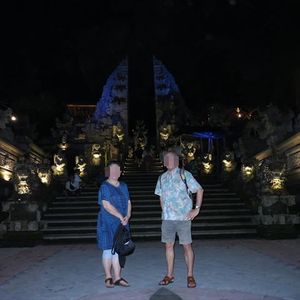 観光で立ち寄った場所ではアサさんが率先して私達の写真を撮ってくれました。普段は二人で旅行しても一緒に写っている写真はほとんどないのですが、今回は二人の写真がいっぱいです。ツアーの最初に一般の民家を訪ねたのですが、お祭りの準備をしているところが見られて、大変興味深かったです。お寺などの有名な場所は観光客でいっぱいでしたが、前回バリに来た時はダイビングだけで観光しなかった私達にはとても楽しかったです。