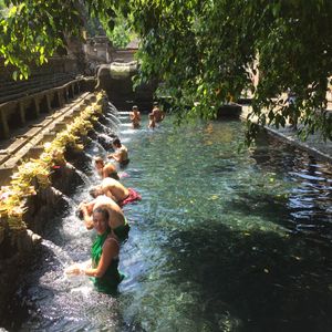 ティルタエンプルでは希望すれば沐浴体験ができます。きれいな湧き水ですし、おもいっきり頭にかぶって大変良い経験になりました。寺院内には腰に巻くサロンの貸し出しや、着替え用の更衣室、鍵付きロッカーもあります。ただし、更衣室は男女共同です!