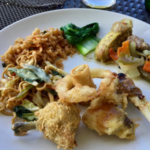 ランチは見晴らしの良いキンタマーニ高原の見渡せる場所でのバイキング。私たちは、ランチやディナーの付いてないコースを選びましたが、1000円もしないランチバイキングがとても美味しく、ガイドさんもこれが美味しいとか、これをつけて食べるとか、一通り全て教えてくれ、ゆったりと美味しくランチをいただきました。