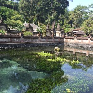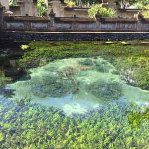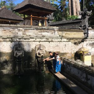 続いては、さらに山道を進んでティルタ・エンプルへ。訪問した日が、日本でのお盆のような週間だったようで、たくさんの現地の方がお参りに来ていました。現地の方は、寺院の奥から湧き出る清らかな水で沐浴をして体を清めます。この日は日差しも強くて暑かったので、気持ちよさそうでした(笑)寺院の奥で水が湧き出ている池を見学できるのですが、本当に水も綺麗で、魚もたくさん泳いでいます。