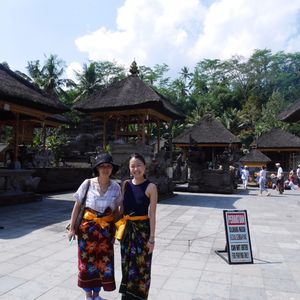 バロンダンス鑑賞後、希望のガムランボールの問屋さん、アタはアシタバはウブドや街中でも見られるので、バリ・ハンディに連れて行ってもらいました。買い物に満足した後、北上、途中、棚田の絶景を観ながらランチ、次はキンタマーニへ。ここからは雨模様で、次はルアクコーヒー園訪問。ここは散策できて、休憩できて、ルアクコーヒの試飲、購入できて、ジャコウネコも見られて結構楽しめました。次はティルタ・エンプル訪問。もう大雨になりましたが、それでも尊厳さは十分感じられて感動。天気の良いときにまた訪れたい場所です。その後はウブドを1時間半ほど散策。帰途は1時間半ほどかかってクタに戻り、中華飯の後、21時にホテルに戻りました。戻る車中で、「バリ衣装を着て写真を記念に撮りたい」と言う私たちの急なリクエストに対して、ガイドのワヤンさんは、予約可能な店を探して何件かに電話をかけてくださり、無事、次の日に写真パチリとなりました。ワヤンさん、運転手さん(お名前聞くのを忘れすみません)、ありがとうございました。おかげで充実した1日を過ごすことができました。