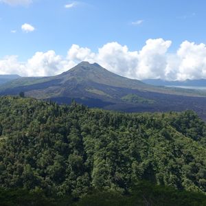 午前中から盛りだくさんのツアーは、キンタマーニ高原に向かい昼食へ。雄大な山とバドゥール湖の景色を楽しめるレストランでした。インドネシア料理のブッフェで、どの料理を食べても美味しくて大満足。ハエが沢山いて、追い払うのに一苦労でしたが(笑)
