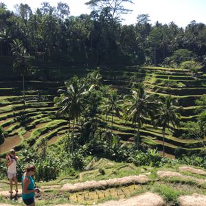 バリ舞踊鑑賞の後は、今回もっとも楽しみにしていたテガラランの棚田です。山道を車で揺られることおよそ30分。まさにテレビでしか見たことないようなザ・東南アジアの棚田がそこにはありました。整然と綺麗に並んだ棚田は、まさに圧巻の景色でした。ガイドさんに棚田をバックに二人の記念写真をとっていただき大満足。