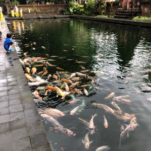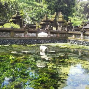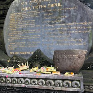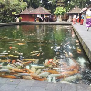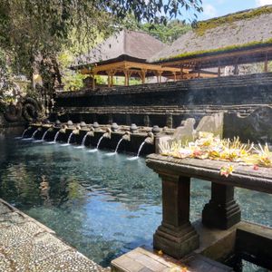 パワースポットのティルタ・エンプル寺院で神秘的な聖水の湧き出る様子を見、沐浴の決めごと等を教えてくれました。