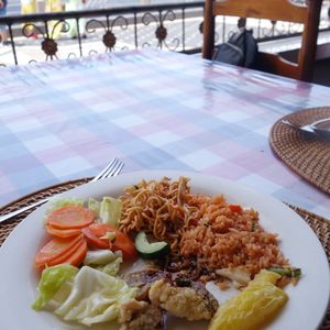 その後キンタマーニ高原へ行き、パノラマ広がるレストランで食事をしました。とても心地よい涼しさで、解放感は抜群。食事は観光地なので、ご察しください笑。