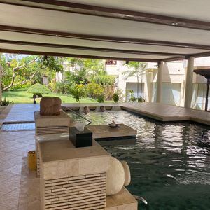 その後タラソスパへ行きました。タラソのプールで足から背中、肩まで全身を水圧でマッサージ(約1時間)水圧がとても強くて想像していた以上に気持ちよかったです。最後のエステは2種類から選べました。アロマオイルでのマッサージでホットストーンが気持ちよくて半分寝てしまいました。ヨガからスパとエステに軽食まで付いて「バリに来た!」という実感が湧きました。次回バリに行くならここのリゾートホテルに宿泊してみたいです。