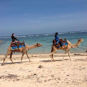 初めてラクダに乗りましたが、期待通り楽しかったです!ラクダを引っ張ってくれるスタッフが、たくさん写真をとってくれました。日本語で色々話しかけてくれて、みんな笑顔で優しかったです!ラクダは可愛いし、青い海と白い雲の背景が綺麗でした!ただ天候にもよりますが、日差しが強く、途中からかなり暑くなってきたので、時間は15分で十分かなーと思いました。ラクダに乗ったことがない方、是非バリ島の海辺で体験してみてください☆