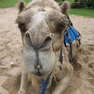初めてラクダに直接触れて乗って海岸沿いをお散歩しました。スタッフの方も写真をいっぱい撮ってくれて記念になりました。途中の休憩ポイントにてぬるいコーラとよくいる物売りはいましたがさほどしつこくなくイヤな気持ちにはなりませんでした。