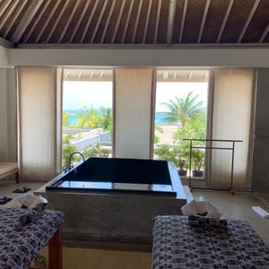 ウェルカムドリンクも美味しく、最後にも美味しいお茶で締めくくりました。なんといっても、その空間と静けさ、眺めも最高でした。スタッフの私語が無いのは、心地良さにすごく影響していると感じました。ゆっくりと時間は過ぎ、3時間のメニューの中で、「強い方がいいですか?」と好みを確認してくれるのも安心しました。バリマッサージを選びましたが、しっかり施術してもらいました。ボディスクラブは、施術の後、床に沢山のカスが落ちていたので、垢が落ちた感もあり、実際に肌がしっとりしていました。ヘアトリートメント後は、髪がサッラサラで、生き返っていて娘達と「すご〜い!」とお互いの髪を確認。最後の日の締めくくりにぴったりの時間を過ごすことができました。