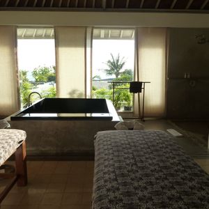 旅行の疲れを癒やされた私は施術中に大いびきをかいて寝ていたようです。これも個室だから安心した結果でしょう(特に予約時に指定はしていないので、ここは個室がデフォルトなのでしょうか。。)。その後はシャンプーとベッドマッサージのため、別室に通されましたが、裸に一枚羽織っている状態でしたが、男女共有の美容室のようなスペースで施術されました。別客で日本人の若い女性が一人いましたが、相手は気まずかったでしょう。シャンプーもヘッドマッサージも気持ちよかったですが、他のレビュアーも書かれている通り、ここで20分ほど待たされましてとても寒かったです。何かの準備が終わったようで部屋に戻りましたが、冷房が掛けられており、これまた寒かったです。そもそもバリの人と寒さの感じ方が違うのでしょうか。その後は部屋付き風呂であたたまり、ジュースとクッキーをいただきました。総合的に評価してこの価格でバリの本格スパを体験したい方はとてもオススメだと思います。ちなみに送迎の人は一言も話すことなく目的地へ届けてくれるプロでとても良かったです。