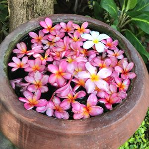全身マッサージを一通り終えると、部屋の外にあるお風呂でフラワーバスに入ります。そのときにスイカジュースかメロンジュースのどちらかを選ぶことができ、クッキーと一緒に持ってきてくれ、フラワーバスに入りながら飲むことができます。お風呂の時間は約15分間で、その後にシロダーラをやってくれます。