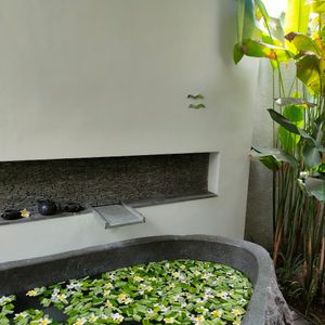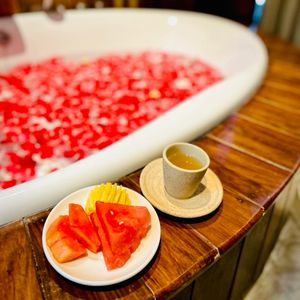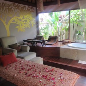 夫婦でSymmetry for Two(180min)のコースに参加しました。このコース自体が2人向け前提なのでカップルやパートナーと参加する方が多いと思います。施術内容ですが具体的にはまず軽いフットケアから始まり60分の全身バリマッサージ、30分のスクラブ、30分のフラワーバスによる休憩時間、そして最後に60分のフェイシャルです。最初の60分は一般的なバリマッサージでした。本スパの前にクタ、ジンバラン地区などで普通のバリマッサージへ行きました。内容はほとんどまったくといっていいほど一緒です。バリマッサージは日本の指圧やタイ古式マッサージのようなものではなく、オイルを使ったもので圧はゆるやかです(個人的には指圧のようなツボを押すものが好みなのですが)。ただ事前の問診で強弱の程度や施術で特に気を付けてほしいところ、糖尿病などの各種病歴を聞かれますので特別なリクエストがあればこのときに伝えておくといいと思います。スクラブは海からとれたあら塩を使用したもので正直痛いくらいでした。これが終わると一旦シャワーで塩を落とします。続くフラワーバスの時間ではマッサージ師の方が一時退室して30分ほどゆったりと二人で過ごすことができました。果物(パイナップル、マンゴー、スイカ)とジンジャーティーを飲みながらの至福の時間です。スパ自体が私ははじめての経験で、フェイシャルも初でしたがこれでもかというくらい丹念に1時間かけてさまざまな施術をして頂きお肌ツルツルになりました。妻もツルツルになったとのことでした。帰り道にポテトヘッドビーチクラブで遊んだりスミニャックスクエアにいってお土産かったりと充実した時間を過ごせました。注意点としては当店がスミニャック地区の中心にあり、他の地区から車移動してくる場合には渋滞がストレスとなる可能性があることです。私たちは近隣に宿泊していたので徒歩で伺いました(10分ほどです)。このあたりは夕方から夜にかけては特に渋滞がひどくまったく車が進まないことがあります。クタやジンバランなどの他の地区から来ることを予定する場合には、午前中に予約するなどあまり渋滞のない時間帯にすることをおすすめします。またフェイシャルがありますので、施術後にお化粧、日焼けなどのUVケアまた虫よけなどが基本的に必要になります。スミニャック地区に宿泊している場合には間違いなくお勧めのスパだと思いました。