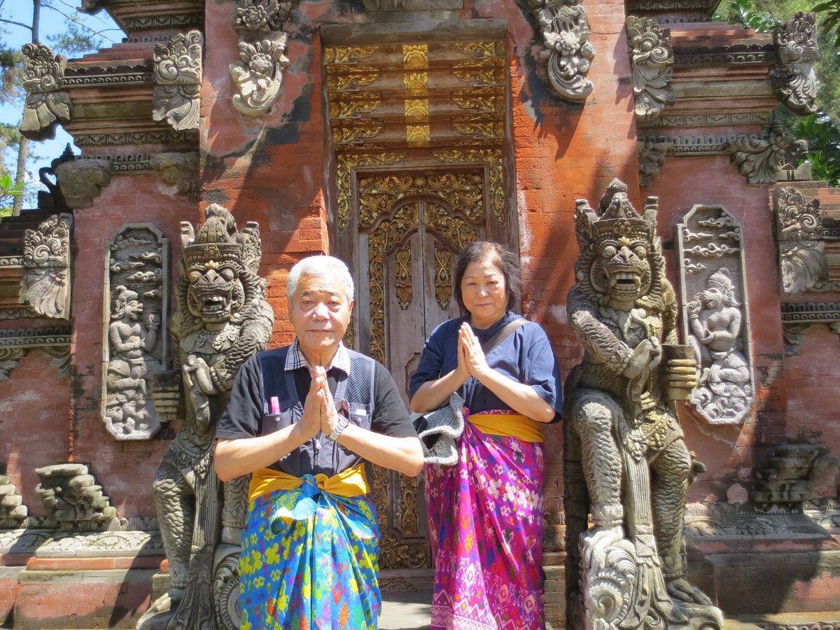 結婚47年目の記念旅行にバリ島を選びました。以前姉妹で行った素敵なバリ島を夫に見せたかったからです。旅行中は快晴が続き、連休前だったこともあり、私たち夫婦にガイドさんと運転手さんが付いてくださいました。歩くのがゆっくりな私たちをいつもにこやかに誘導してくださるアサさんの見事なガイドと細やかな配慮に感謝するばかりでした。途中、希望も聴いていただき、スーパーマーケットでの買い物、バリマッサージへの案内など予定以上の行動が出来とても有意義な1日でした。最後のバリ舞踊は早めに行き、特等席で鑑賞することが出来ました。近いうちにまた行きたいと話している私達です。