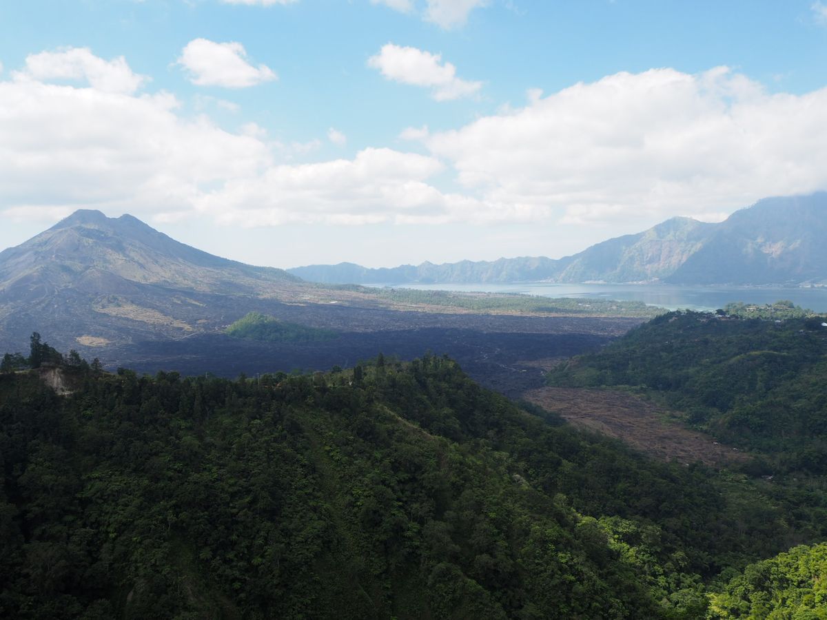 キンタマーニ高原のランチ。ビュッフェで火山、マグマ見ながらです。