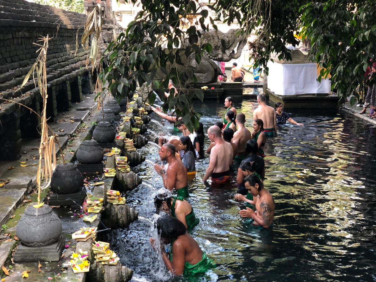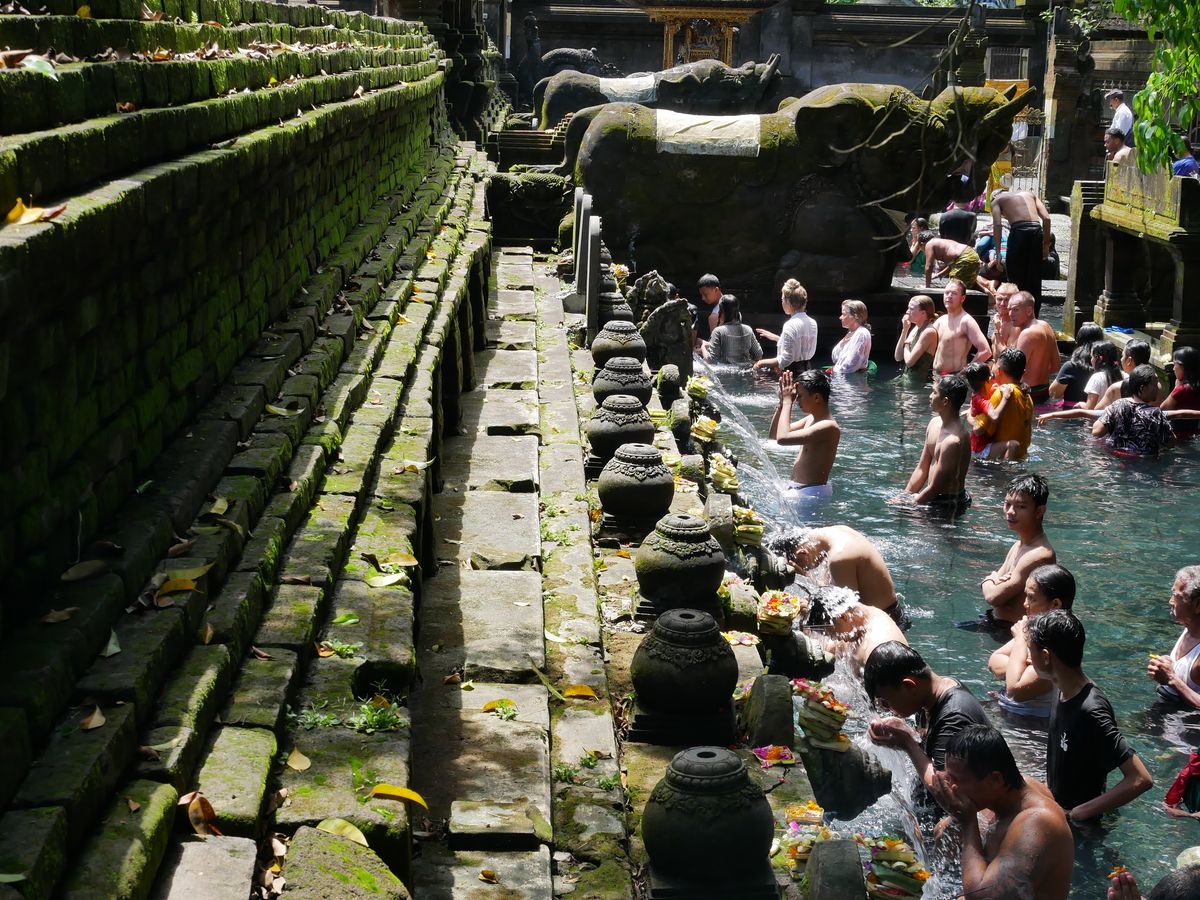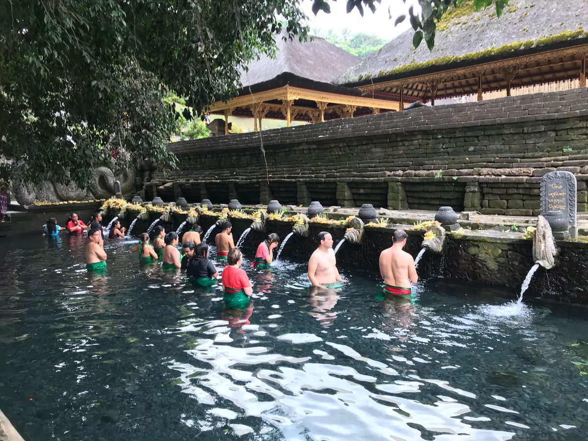 そのあと、ティルタエンプル寺院。湧水の綺麗な世界遺産で、信者の方、インドネシア国内の方、外国人観光客が一同になって沐浴し、水を体に受ける姿は一見の価値ありです。
