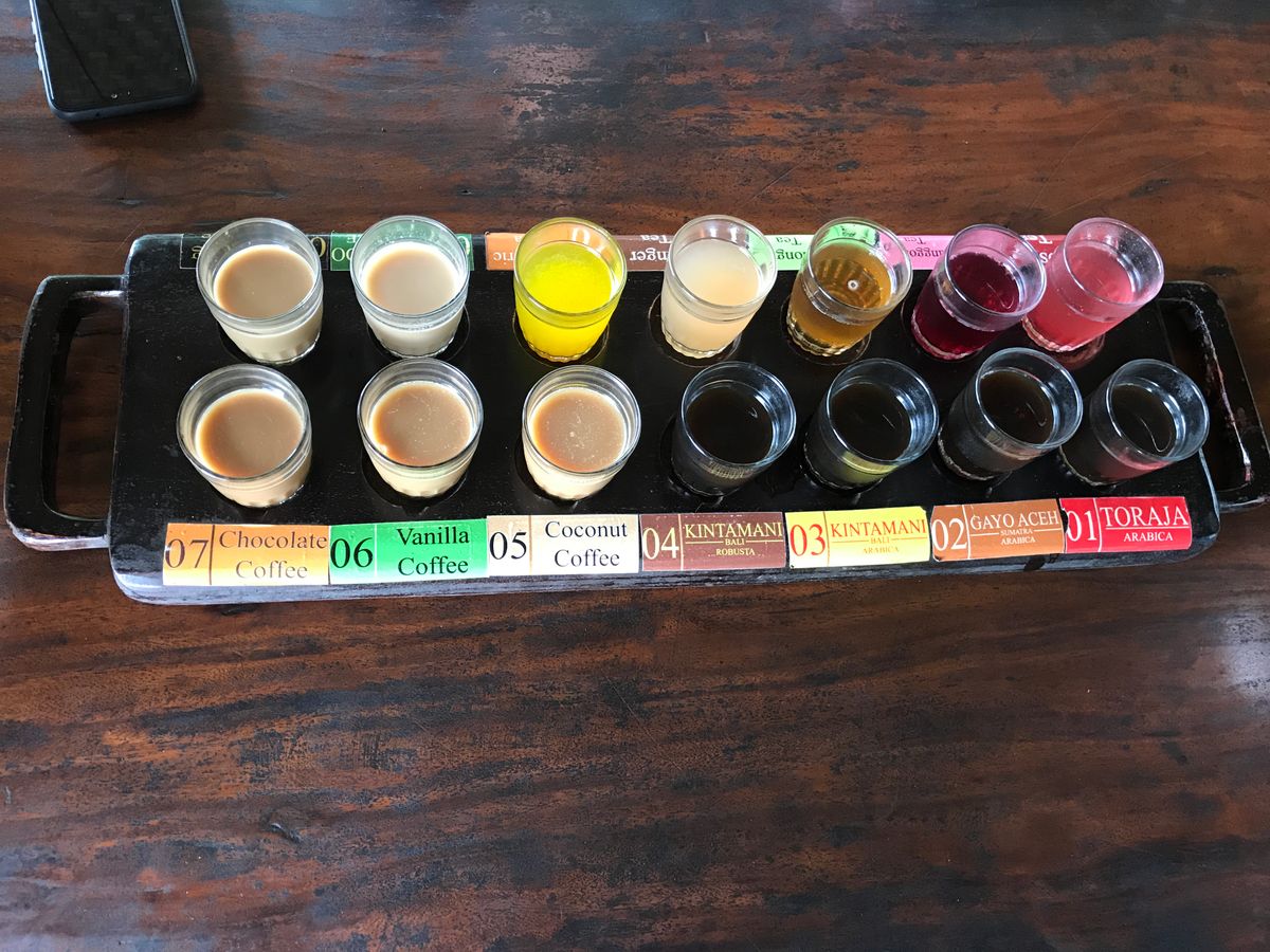 まずはバリ島演舞を見て、その後コピルアクが有名なコーヒー屋さんへ。ここにも日本語で丁寧に説明してくれるので、面白いし、日本だと滅多に飲めないコピルアクを低価格で飲めました(*´ω`*)色々無料で飲み比べできて、美味しいものはその場で買えたのもまた良い(๑˃̵ᴗ˂̵)!