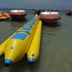 娘は小さいのでバナナボートは少しエアーを抜いてくれました。
