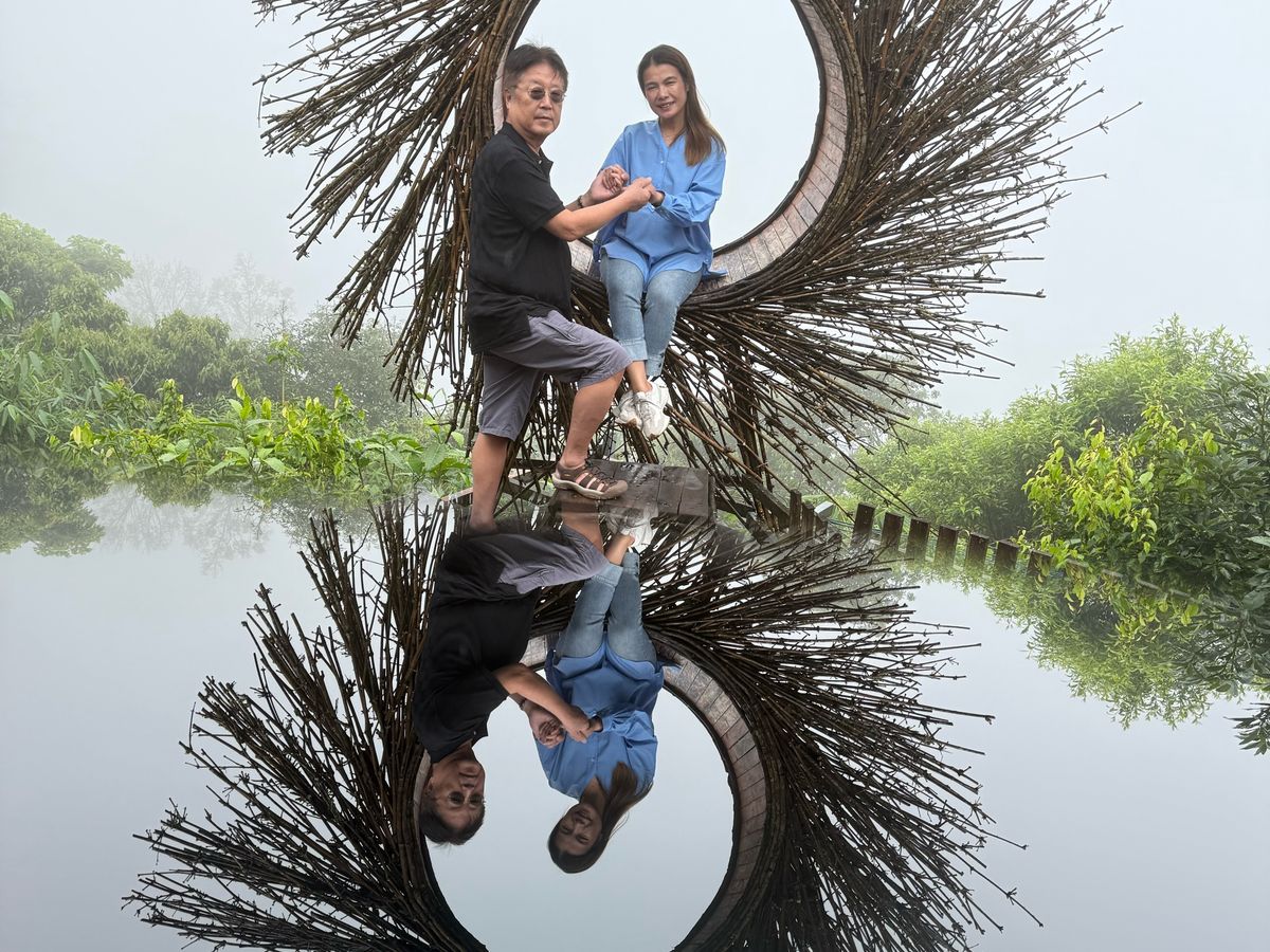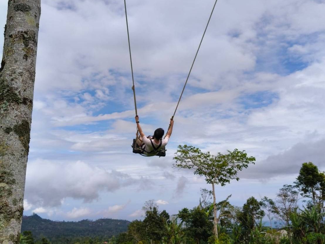 ティガラランのハッピースウィングというフォトスポットで思い出写真を撮影。