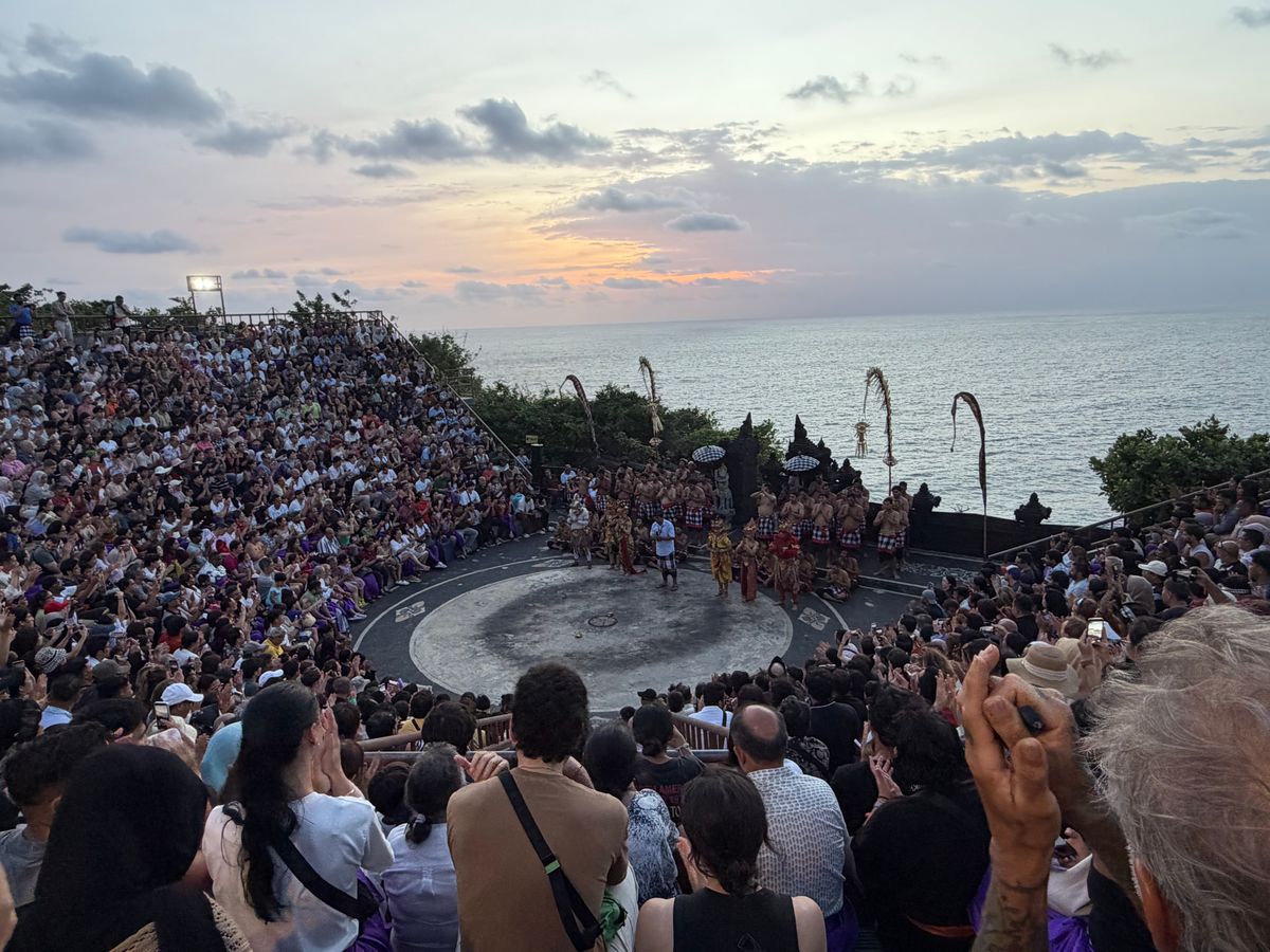 8/7に大学生2人でツアーを申し込んだ。初めてのバリの観光で,治安が安全と言われているヌサドゥア地区内のホテルで宿泊。ヌサドゥア地区を離れた観光なのでツアーを申し込んだ。朝はホテルまで時間より少し早めにお迎えに来てくれて,5分前に集合したらすでに待機してくれていた。街中は渋滞していたのでプランの順番を変更して渋滞にはまることなく観光を楽しめた。バスの中はバリのおすすめのスーパーを教えてくれたり,有名な物や周りの観光スポットなどなんでも教えてくれて会話に困らなかった。日本語はなんでも通じるから安心。プランでは後半にお土産を買える市場?に行く予定だったが,渋滞のこともあるし,夕方はすごく混む(近くでケチャックダンスが披露される)から先にお土産を買いに行った。現地の人は値切ってみたら交渉成立しがちなので,まずは値切るのを挑戦すべきだと思う。文化財など観光しながら途中でブランコに乗って写真を撮る場所があるけど行くかと提案してくれて,プランに含まれていない所も案内してくれた。因みにこの場所はガイドさんいないと撮影の順序が難しく,ツアー無しの観光客は全ての写真スポットを回れず損している人が多かったので,ツアーで行くのがおすすめ。ここに来る観光客は日本人が7割くらい。棚田を見ながらのランチは見晴らしがすごく良く,外での食事がすごく気持ちが良かった。しかし,ブランコのプランを加えたので少し時間がカツカツになってしまって,食事の時間は1時間弱だった。しかも注文してから料理が出るまで少し時間がかかる。でもすごく美味しい。ティルタウンプル寺院では,体を清めるところを見学でき,見るだけだったが気持ちが清らかになった気がした。ここの水は湧き水ですごく透明度が高く綺麗だった。キンタマーニ高原はすごく標高が高いところに展望台があり,標高に敏感な人は耳抜きしながらの移動になるかと思う。高山病とまではいかないが,標高高いけど大丈夫?とガイドさんが確認してくれるくらいには高い。最後にケチャックダンスを見に行った。開始ギリギリに行かず余裕を持って行ったので,最前列で見ることができた。ショーは1時間。ケチャックダンスは物語になっていて,日本語で書かれた解説文もくれるのでダンスの内容を理解しやすかった。暗くなってからのショーなので虫が寄りやすく,虫除けをかけていても蚊に刺されてしまったので注意が必要。ショーが終わる直前に「行くから準備して」とガイドさんに言われ,え?もう?と思いながら立つとショー終了後すぐに写真撮影の交渉をしてくれた。これがちょっとでも遅れて準備すると大行列になるらしい。一番乗りで舞台に上がり出演者と写真を撮ることができた。