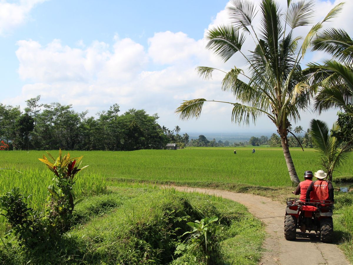 最初はあぜ道のようなところを行くので農耕具に乗っているような気分になりますが棚田の景色はとてもきれいです。その後いきなりかなりの急斜面を降ります。大きな石がごろごろしているのでハンドルを取るのが大変なうえ結構危険です。全体としてスピードを出せるようなルートではないですが、岩山を下ったり泥水の中を走ったりは楽しいです。ただハンドルや体勢維持に力がいります。私が行ったのは乾期ですが、スタッフの方は、雨期の嵐の後がすごいよと言っていました。カメラやビデオを持っていくとスタッフが一生懸命撮ってくれます。幾らかチップを求められますが(額は自分で決められます)走り回っていい写真をたくさん撮ってくれるのでありがたいです。