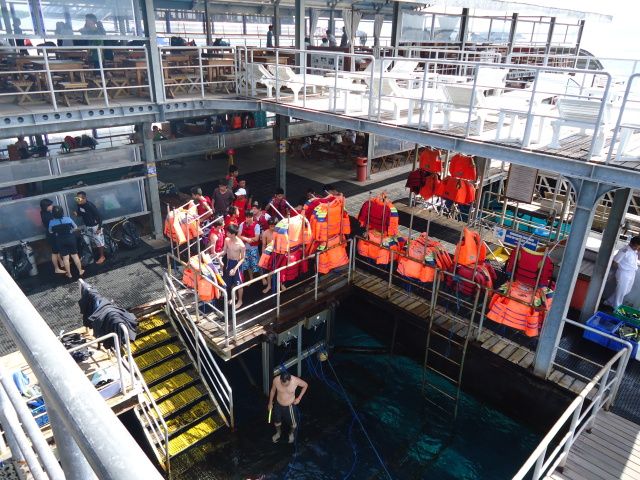 また小船で、沖にある施設に戻り、うろうろしていたら、スタッフが昼食のバイキングをすすめられたが、中国人がすごい勢いで食べつくしていました。
