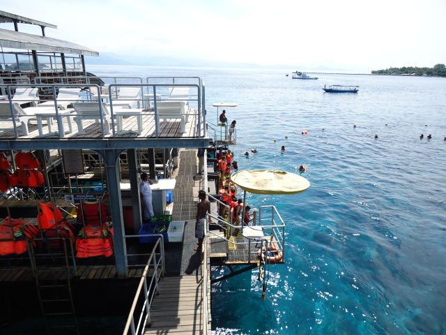 バリの海は綺麗なイメージはなかったので、趣味のシュノーケルをする予定は無かったのですが、このアクティビティを見つけ、バリでも綺麗な海でシュノーケルがしたいと思い参加しました。予想を超えた大きな船と大人数でした。周りは殆ど中国人のようでした。スタッフが、日本語で「私に何でも訊いて下さい」と挨拶をしに来てくれました。他のスタッフも日本人と確認してくれて、トイレで並んでいると、割り込んでくる中国人をどけてくれたりと、日本人には優しい印象を持ちました。
