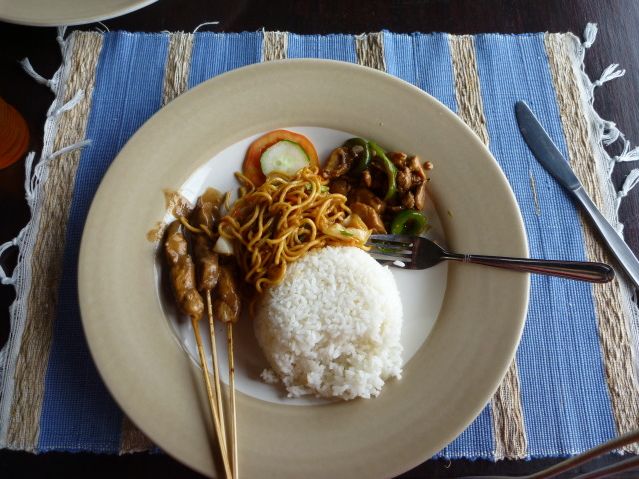 ランチはレストランで食べましたが、おいしかったです。ナシゴレン、チキンカレーなど6種類ぐらいから選べます。