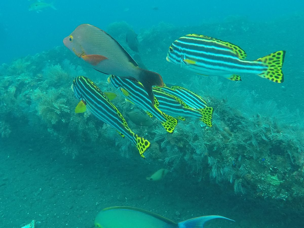 雨季に参加したので、海の透明度はそれほど良くはなかったです。しかし、沖縄のダイビングよりも魚の種類やサンゴが多かったように思います。魚の群れもいくつか見れてとても素敵でした!沈没船は想像の何倍も大きく、沈没船の中を通り抜けたときはすごく興奮しました!インストラクターも参加者二人に対して日本人の方と欧米の方の2名が偶然ついてくれて、車もほかの参加者がいなかったので貸切状態ですごく快適に過ごせました。ランチも美味しかったです。とにかく沈没船が大きくてびっくりしました!行ってよかったです。