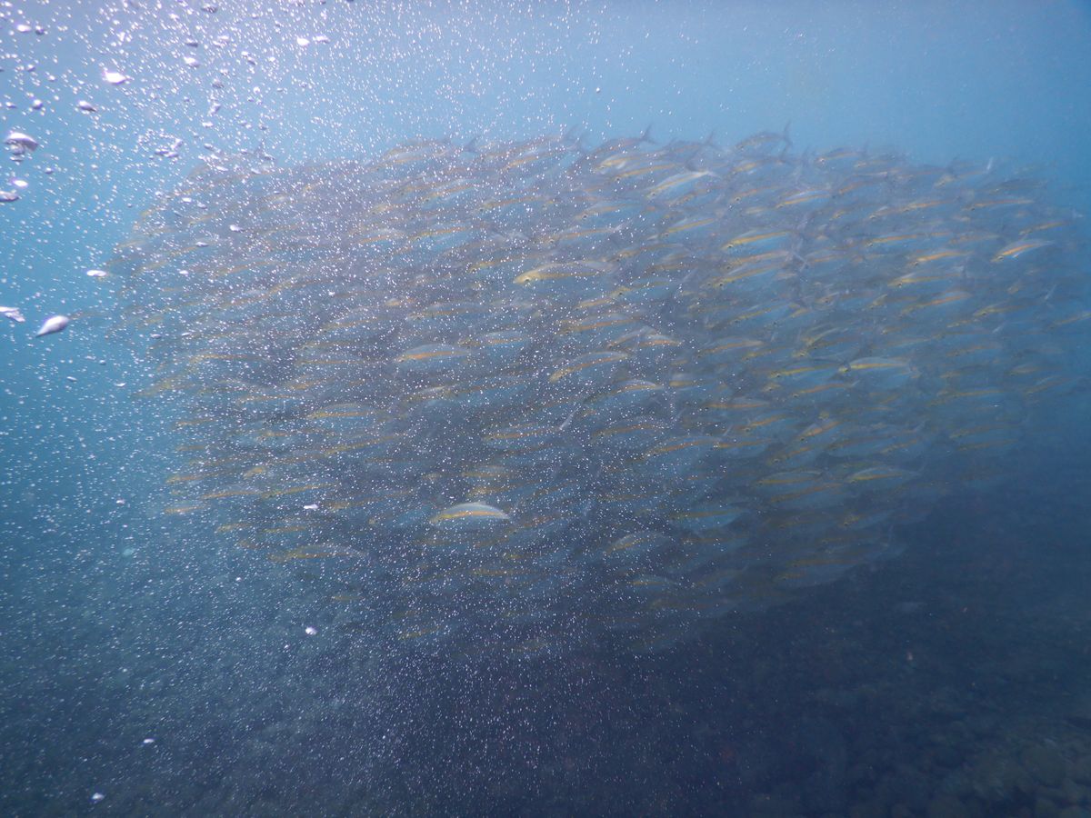 前日は雨が降っていたので海のコンディションが心配でしたが、当日は天気にも恵まれ魚の大群が見れたので良かったです。