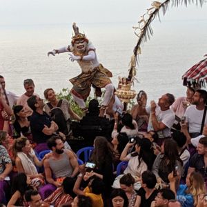 迎えに来て頂いたガイドさんは、日本語が上手で、穏やかに話す方でした。写真を上手に撮って頂きました。ケチャックダンスの会場は、既にたくさんの人でした。空いてる席に着きましたが、残念ながら夕日と会場を一緒には見れない場所でした。それだけが残念、他は満足です。でも、ダンスの前に夕日が沈むところを見ることが出来ました。きれいでした。