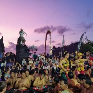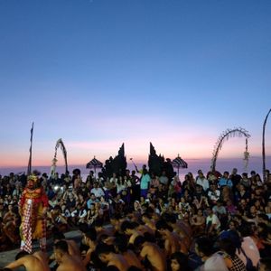 まず、岸壁にそびえたつウルワツ寺院はとても絶景です。そこで繰り広げられるケチャックダンスはとても不思議な踊りではありますが、夕日が沈んでいくなかで空の色が刻々と変化する中でのダンスはとても感動的なものでした。