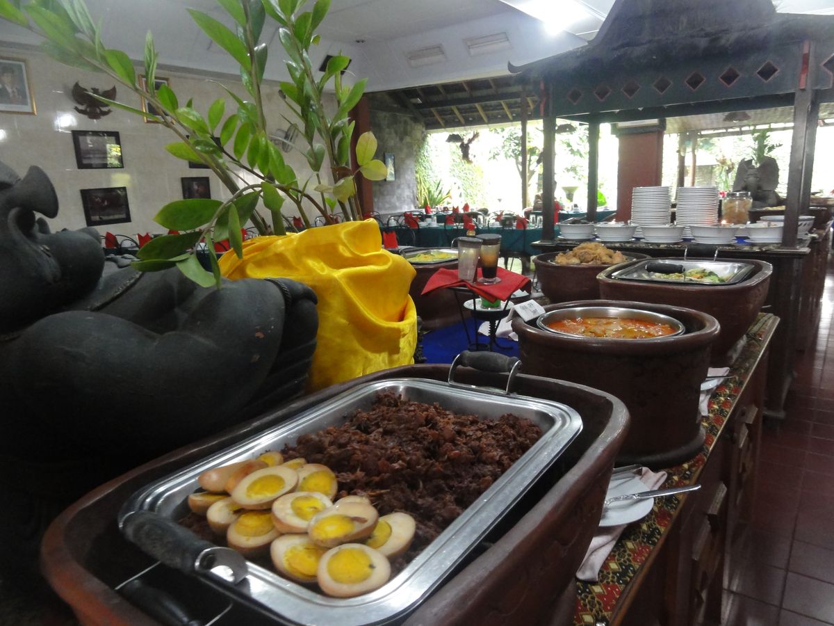 そのあと、銀細工のお店とバティック 工房に寄ったあと、昼食へ。昼食はインドネシア料理のバイキングスタイルで、味付けは日本人に合う感じでどれも美味しくいただけました。