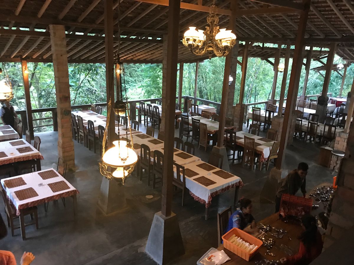 私たちは写真の店に入りました。地元の料理ではないですが、安くでおいしかったのでお薦めします。舞踊開始40分くらいには会場入りしないといい席がとれないとのガイドさんのアドバイスに従ったところ前から3列目の中央付近で鑑賞することができました。